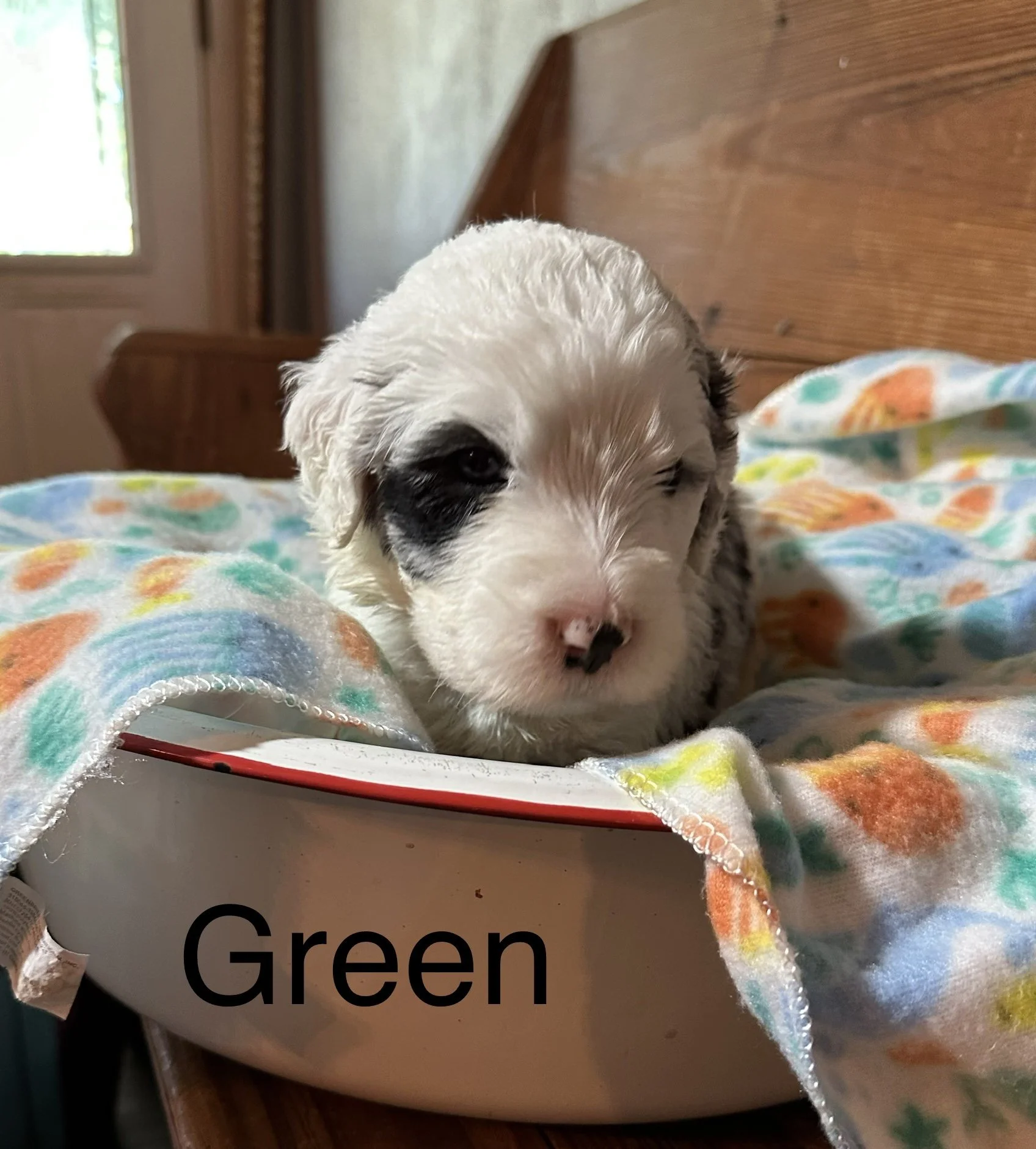 AKC Old English Sheepdog stud with one blue eye and a very sweet temperament.